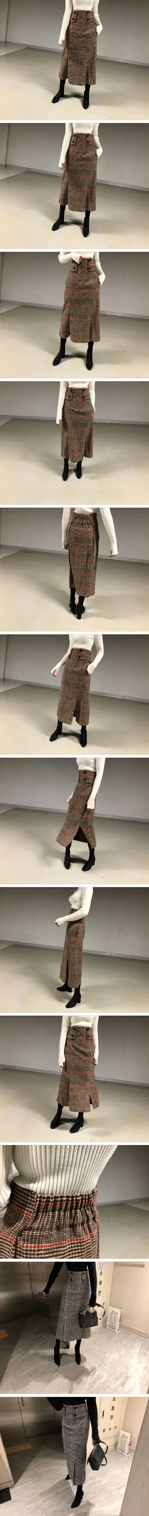 Women`s Check Patterned Long Skirt with Button Details Black Beige