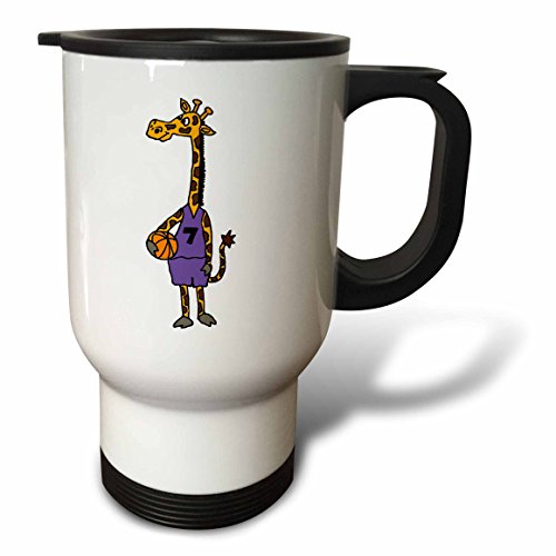 3dRose tm_223330_1 Funny Giraffe Holding Basketball Art Travel Mug, 14 oz, Stainless Steel, White