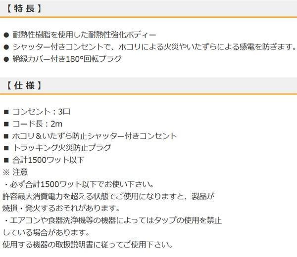 fk094igrjsシャッター付きコンセントで、ホコリによる火災やいたずらによる感電を防ぎます サイズ 個装サイズ:9×22×5cm 重量 個装重量:210g 生産国 中国 ホコリ防止シャッター付きの安全タップ シャッター付きコンセントで、ホコリによる火災やいたずらによる感電を防ぎます