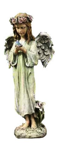 Napco Little Girl Angel Holding Bird Garden Statue