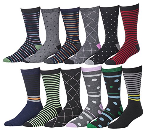 -. Binding : Apparel -. Brand : Gilbins -. Department : mens -. Feature : The hot Stripe design in a variety of men's dress colors / Size 10-13 fits shoe sizes 8-12 / Ready to give as a gift, nicely displayed on hanger / Special softness for extra comfort; proper strech for a good fit / Machine washable, tumble dry -. ProductGroup : Apparel -. ProductTypeName : SOCKSHOSIERY -. Title : Men's Pattern, Stripe Dress Socks, 12 Pairs, Size 10-13
