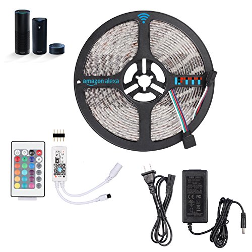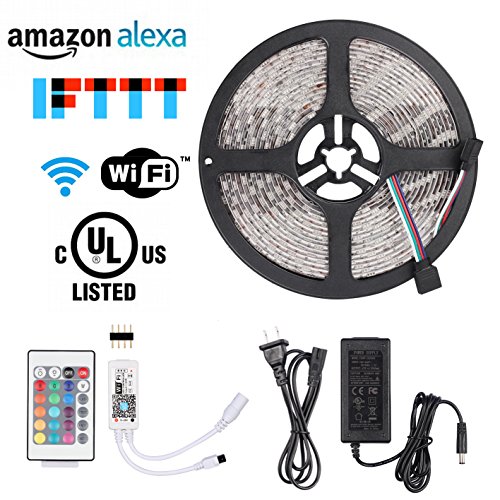 Youngist Smart WIFI Alexa RGB LED Strip Light Kit with UL adapter, Waterproof 16.4ft 300leds Super Bright, 24 Keys Remote Control,WIFI APP on Android and IOS, Compatible with Alexa and IFTTT