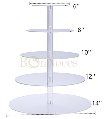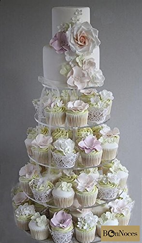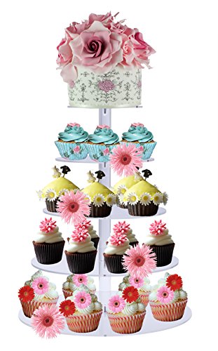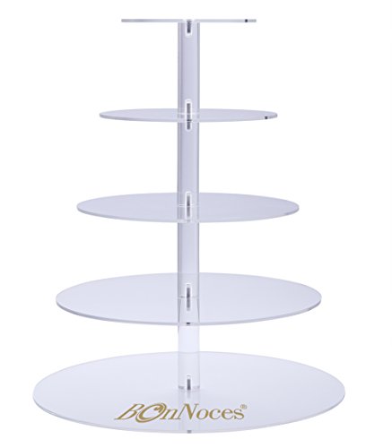 - Sturdy, clear, acrylic cupcake tower was constructed with 5 round shaped plates that can hold approximately 50-60 cupcakes.