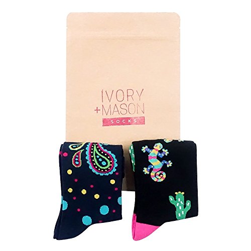 -. Binding : Apparel -. Brand : Ivory + Mason -. ClothingSize : Sock Size 10-13 / Shoe Size 8-13 -. Color : Paisley and Geckos -. Department : mens -. EAN : 0045925996533 -. Feature : UNIQUE DESIGN - Ivory + Mason provides one of the most unique novelty Men's socks on the market. Our mission is to create the world's most comfortable pair of socks. Perfect for all year round and great gift for any occasion. These classic men dress socks pair perfectly with a suit and dress shoes or even for a casual evening out in jeans and sneakers. / GUARANTEED COMFORT - Our dress socks are made with a cotton blend including polyester and spandex. Cotton socks are beneficial because they absorb moisture from your feet and it evaporates from the socks. We guarantee your feet will feel comfortable while wearing your dress shoes. The socks contain 80% Cotton, 15% Polyester and 5% Spandex. / VERSATILE SIZING - Sock size 10-13 will fit most men's shoes. This usually translates to a man's U.S. shoe size 7-13. (European 42-46, UK 7-12). Our styles can also be worn by women. This usually translates to a woman's U.S. shoe size 9-15. / TWO PAIRS INCLUDED - A bonus pair of socks included in all orders so you get two Men's dress socks. Our socks styles go past your ankle. These colorful designed socks are the best everyday dress socks for men. They come in a eco-friendly kraft packaging with two pairs of dress socks. / DESIGNED IN USA - Our socks patterns are designed with love in Los Angeles, CA. Our creative director hand designs each pair to provide unique designs and ideal fit. Ivory Mason has been featured in Oprah Magazine, Allure, OK! Magazine, Refinery29, E News, The View and may more publications and television outlets. -. IsAdultProduct : 0 -. MPN : 43190-628565 -. PartNumber : 43190-628565 -. ProductGroup : Apparel -. ProductTypeName : TOYS_AND_GAMES -. Size : Sock Size 10-13 / Shoe Size 8-13 -. Title : Ivory + Mason Dress Socks for Men - Colorful - Novelty - Paisley and Gecko Design - Cotton Blend - Size 8-13 (2 Pairs) -. UPC : 045925996533