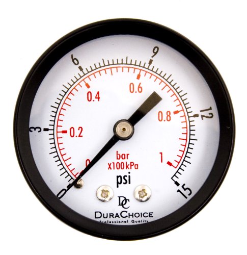 DuraChoice 2" Dial Utility Pressure Gauge for Air Compressor Water Oil Gas, 1/4" NPT Center Back Mount, Black Steel Case, 0-15 PSI