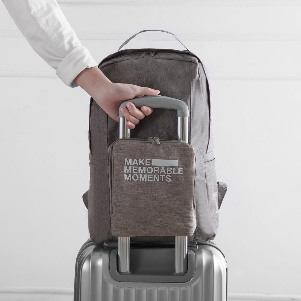 ★ There is a gap between the front pocket and the backpack, it is possible to just hang it on the carry bar of the suitcase.