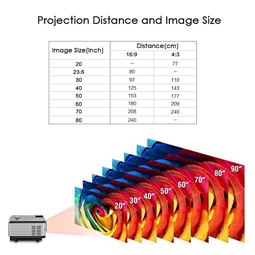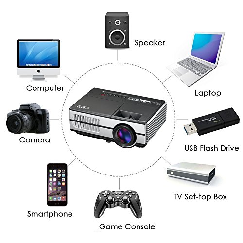 Big screen size up to 120 inches. Equiped with USB, HDMI, VGA, AV slot, built-in speaker. HDMI port makes it easy to connect to receivers, Blu ray players, PS3, WII, roku,DVD, iPhone, iPad, Smartphone, Apple TV and more. Good for Home Use, Video Games, Movie, Entertainment, Party, Outdoor Activities etc.
