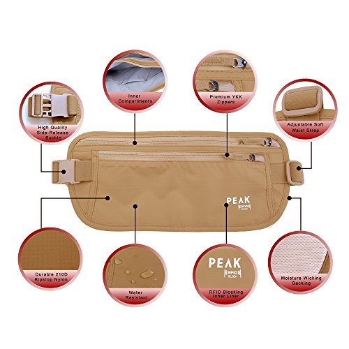 -. Brand : Peak -. EAN : 0820103114844 -. Feature : $250 THEFT PROTECTION INCLUDED - We are so convinced by the security of this money belt, we will reimburse for up to $250 of content replacement cost if your money belt is stolen. We didn't cut corners on your safety. This is the most secure money belt you can buy. / CUSTOM DESIGNED IN THE USA - Tested by American Travelers. Most money belts are inventory items from Chinese manufacturers. This one isn't. We obsessed over this design to provide you a superior money belt. Compare others and see for yourself. Many features are exclusive to PEAK. / THE MOST SECURE MONEY BELT MONEY CAN BUY - Our RFID Block provides protection from electronic pickpocketing and identity theft for US chip-enabled cards. PEAK's tested neutral color looks good and is easily concealed even under light color clothes. Our sturdy side-release buckle eliminates accidental release. / THE HIGHEST QUALITY ZIPPERS, BUCKLES AND FABRIC - Our YKK zippers are meant to last and not jam or break. PEAK's durable and lightweight thin-profile Buckle is secure and easy to open and close. Our 210D ripstop nylon is water resistant and more durable than the 70D or polyester that our competitors use. / TRAVEL-TESTED DESIGN IS SPACIOUS, NOT BULKY - Sized to fit multiple US passports and other important belongings. Our pockets are crafted with compartments to organize cards and IDs so you can quickly and easily find what you are looking for. -. Label : PEAK Gear -. Manufacturer : PEAK Gear -. PackageQuantity : 1 -. ProductGroup : Sports -. ProductTypeName : OUTDOOR_RECREATION_PRODUCT -. Publisher : PEAK Gear -. Studio : PEAK Gear -. Title : SPECIAL HOLIDAY P.R.ICING! - Premium RFID Block MONEY BELT with $250 THEFT PROTECTION By PEAK. Undercover Hidden Travel Wallet and Waist Stash. PERFECT GIFT FOR A TRAVELER! -. UPC : 820103114844