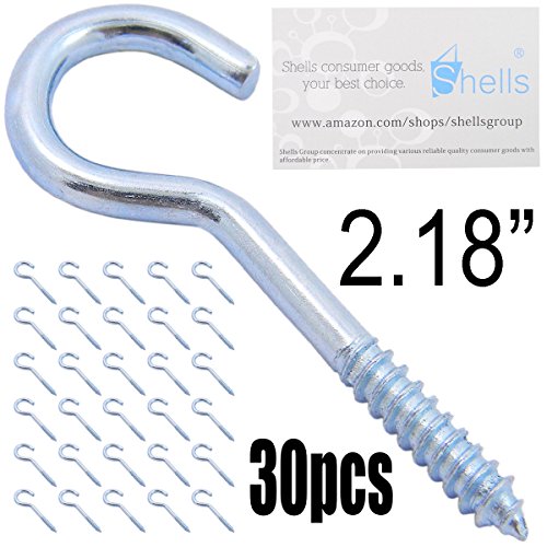 Shells 30PCS Silver Color Zinc Plated 2.18 Inches Metal Cup Hooks Round End Screw Hooks Self-tapping Screws Hooks