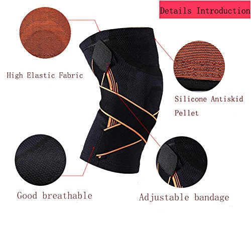Knee Brace Compression Sleeve with Silica Gel Pad Anti Shock Kneecap With Adjustable Bandage (M, Black)