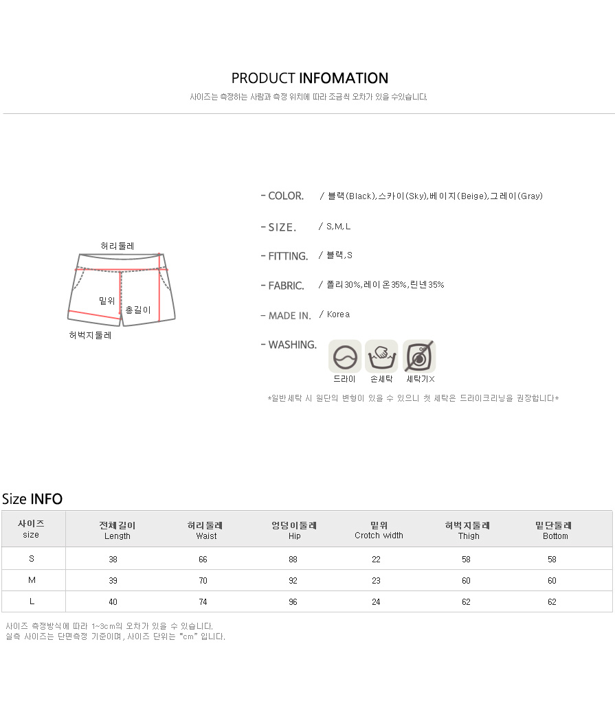 컬러는 블랙,스카이,베이지,그레이 4컬러에 S,M,L