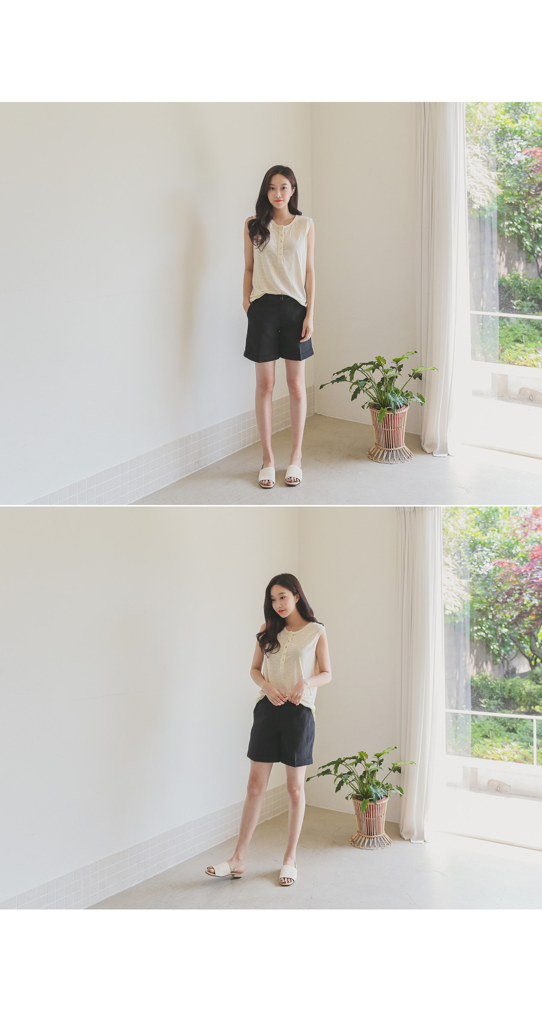 # qs8219 자신감장착 린넨4부반바지