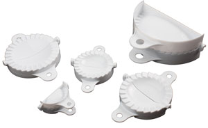 The Paderno World Cuisine set of five dumpling molds come in diameters of 2 1/2", 3 1/4", 4", 5" and 7". The molds are ideal for creating dumplings, calzones, pierogi, and fruit pies. You can use homemade or store-bought dough and wrappers with these molds and have a finished product in a very short time.