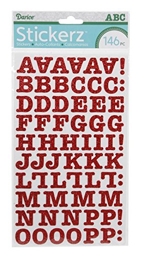 Darice 1219-50 146-Piece Glitter Alphabet Sticker, Upper Case Letters with Bubble Font, Red