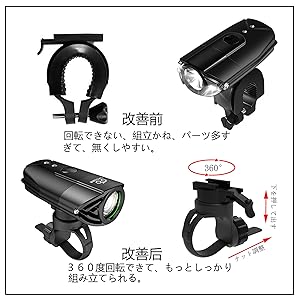 1.走行中、垂れ下がれ防止、角度が真っ直ぐ前を向く様、確実に固定できるようブラケットを改良しております。