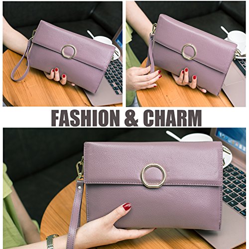 Genuine Leather Clutch Purse Handbag,Shalwinn Womens Evening Clutch Bag Shoulder Bag with Clutch Strap and Long Shoulder Strap for Party or Wedding About The Material: Material:Premium cowhide leather with lichee pattern