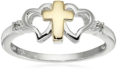 Precious Moments 2-Tone Sterling Silver Diamond Accent Heart and Cross Ring, Size 7