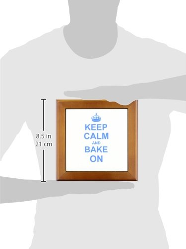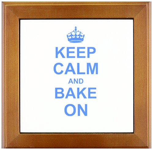 3dRose ft_157637_1 Keep Calm and Bake on Fun Humorous Blue Text Design for Baking Hobbyists Bakers and Bakery Owners Framed Tile, 8 by 8-Inch