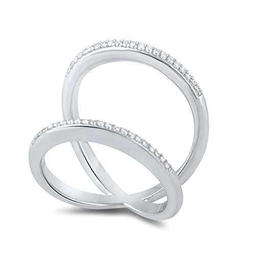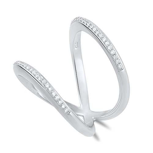 -. Title : Sterling Silver Cz Double Band V Ring (Size 4 - 9)