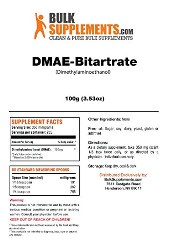 BulkSupplements Pure DMAE-Bitartrate Powder (100 grams)