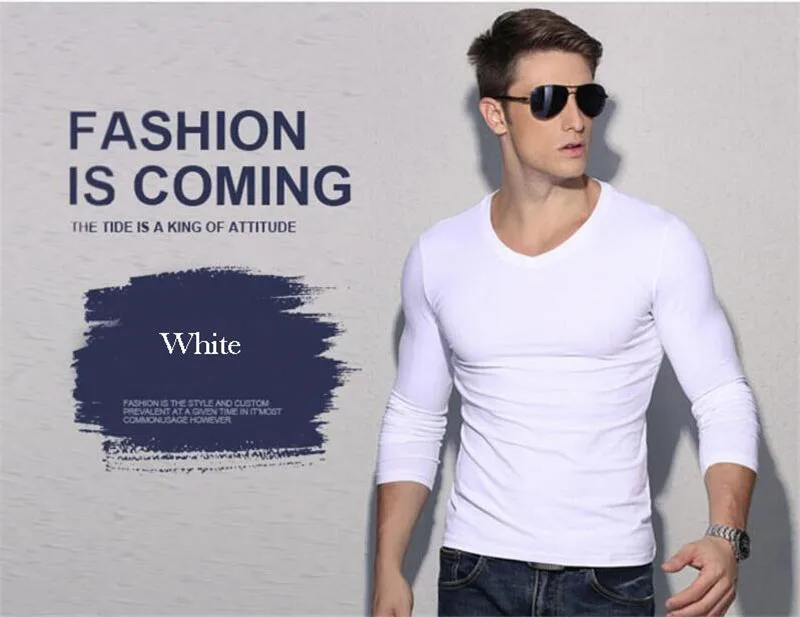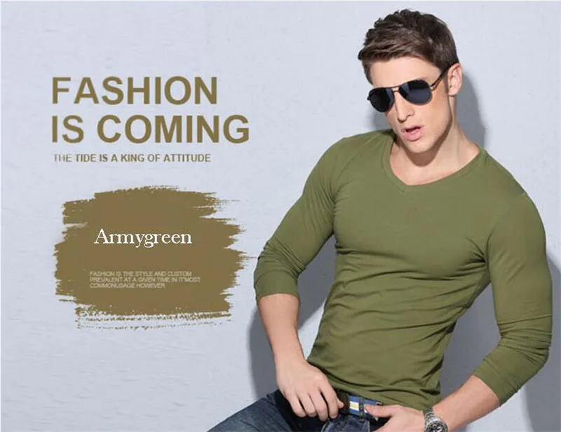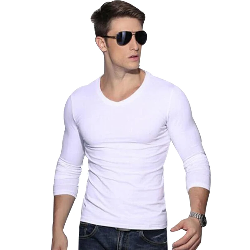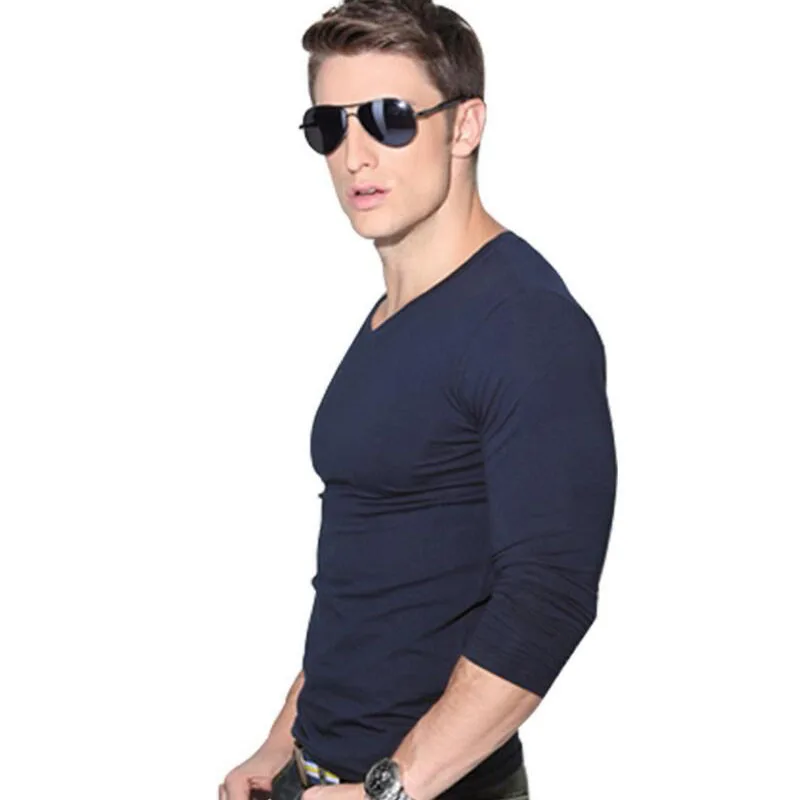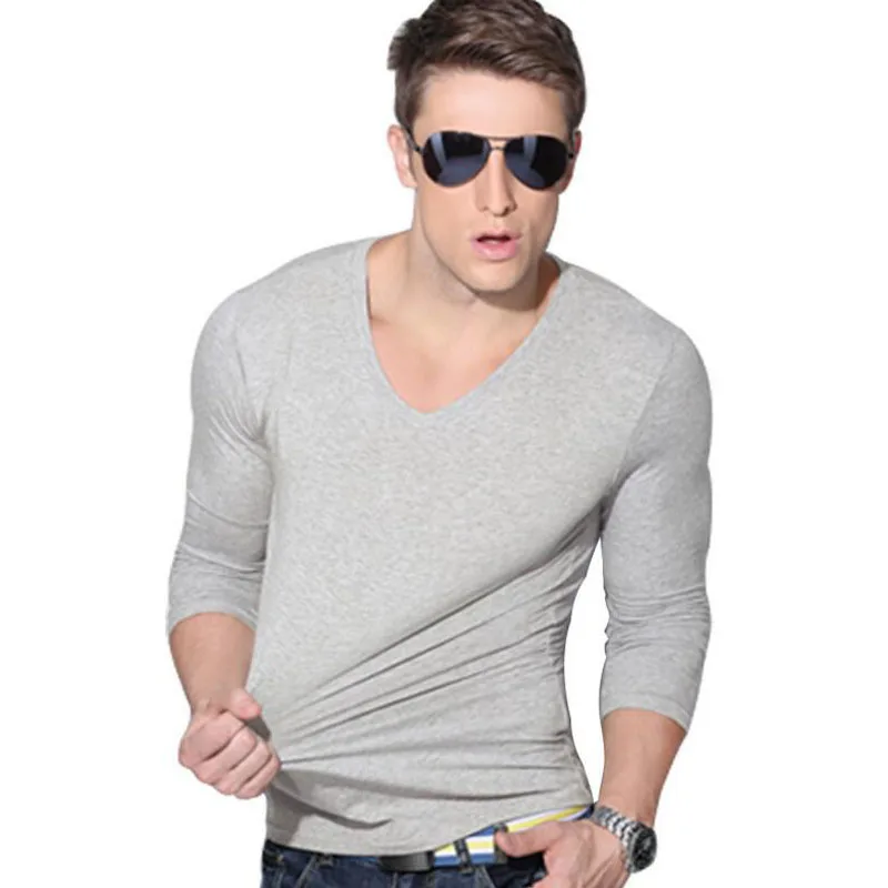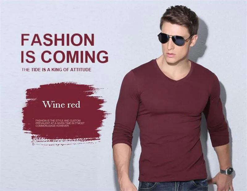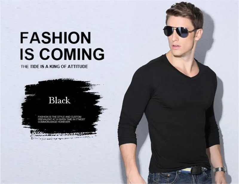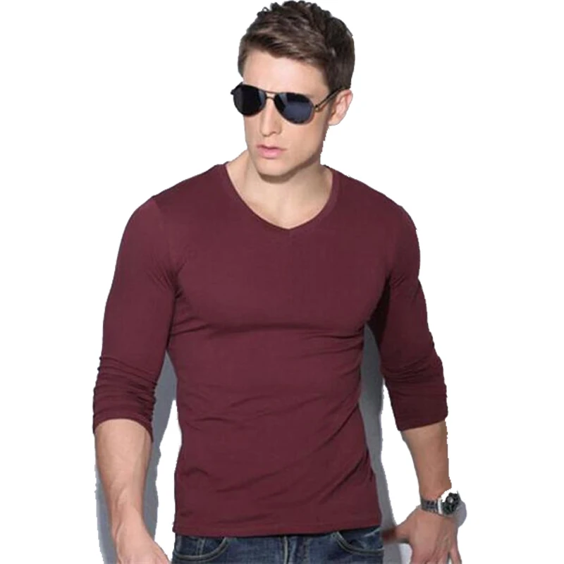 Description 1:men v-neck long sleeve t-shirt