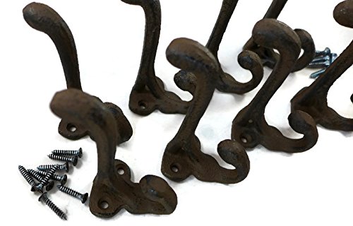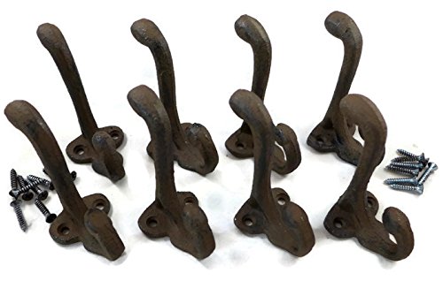 Rustic Cast Iron Coat Hat Wall Hooks School Farm Tack Closet Set of 8