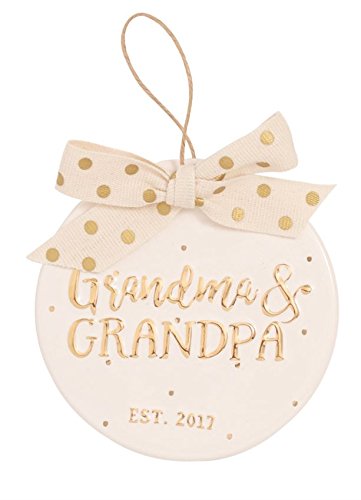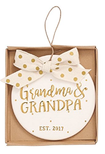 - Features a disk ornament with gold-colored foil accent dots & a raised gold foiled holiday sentiment that says: "Grandma & Grandpa Est. 2017"
