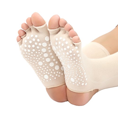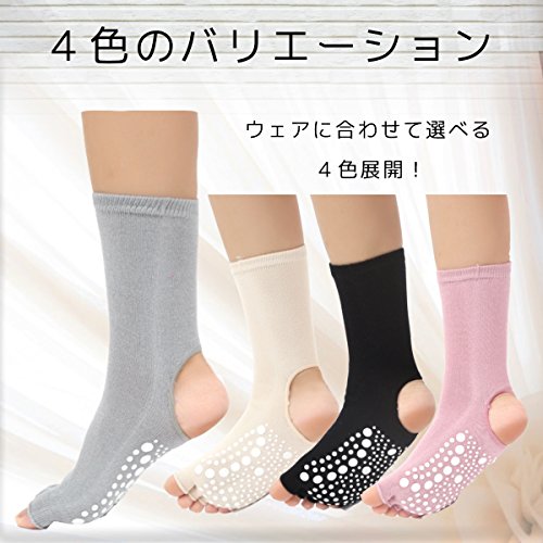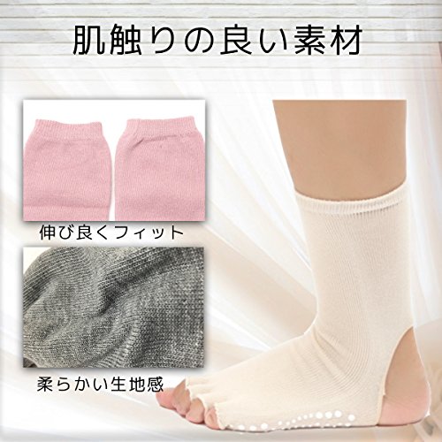 요가복 JCW 요가 삭스 5개 손가락 손가락 없음 발뒤꿈치 홀 미끄럼방지 부착 길이 키타입나와 차가와져 방지 (베이지)