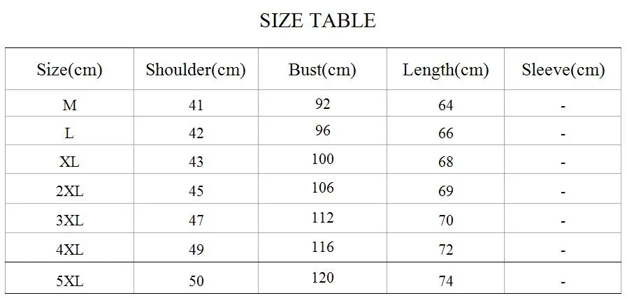 size:Asian size M L XL 2XL 3XL 4XL 5XL