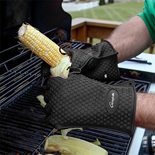 BBQ Gloves, Amytalk Heat Resistant Silicone BBQ Grill Oven Gloves for Cooking, Baking, Smoking & Potholder (Black)