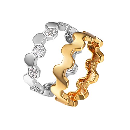 -. Title : Suplight ハニカム セットリング 六角形モチーフ プラチナ レディース ジルコニア シルバー ゴールド リング 指輪 ジュエリー アクセサリー 12~23号