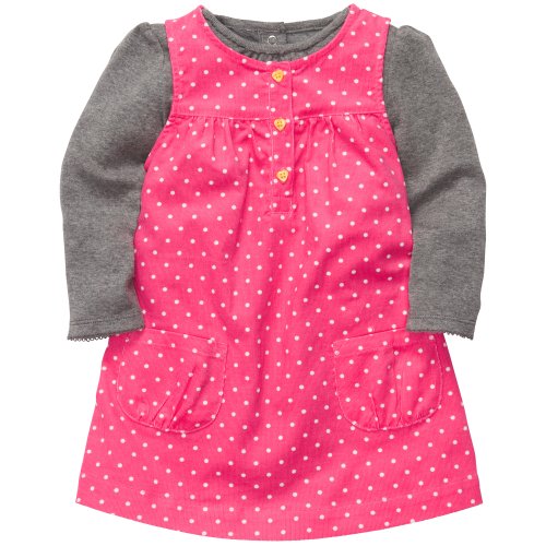 A pretty pink corduroy jumper and gray bodysuit are a stylish and Set includes long-sleeve bodysuit and corduroy jumper Snaps on panel for quick and easy changes Buttons for easy over-the-head dressing cozy combination.