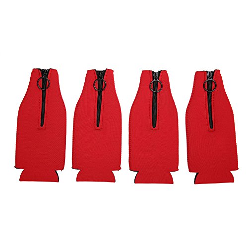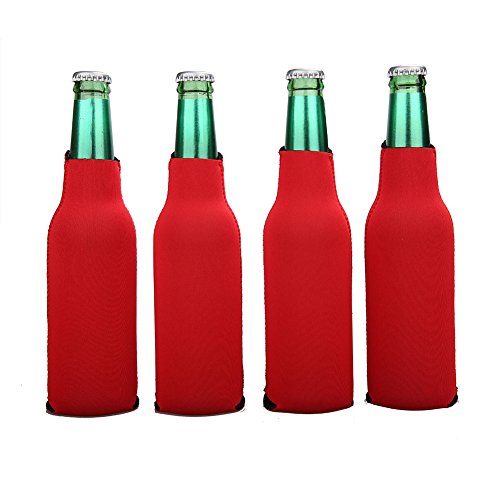 E - Living 330ML (12 OZ) Collapsible Neoprene Beer Bottle Cooler / Coolie / Cover / Insulator / Holder / Huggie / Sleeve for Beer - 4 Pack (Red)