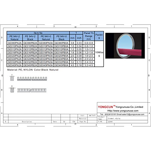 Yongcun 1.0mm Slotted Grommet Edging Molded Grommet Strip Movable Bushing pack of 32Feet 10m(PE 94V-0/1.0mm)
