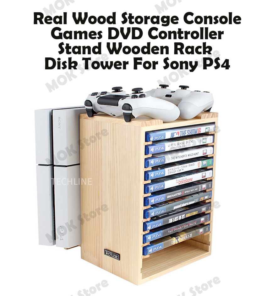 Consoles Games DVD Real Wood Storage Stand Wooden Rack Disk Tower For Sony PS4