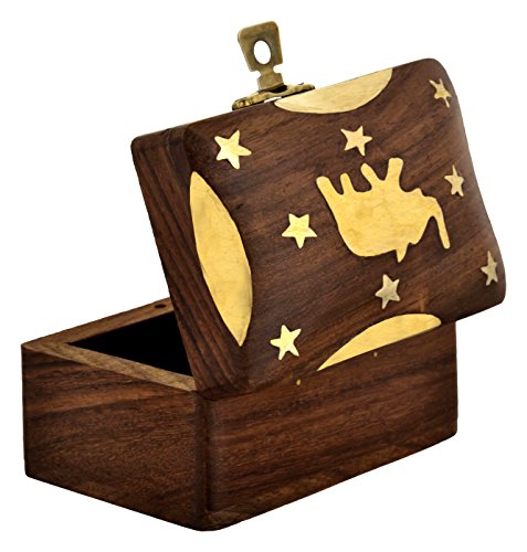 SAAGA Wooden Ring Box / Ring Bearer with Elephant Motif in Brass / Handmade : 3.5X2.5X2.5 inches (LxBxH)