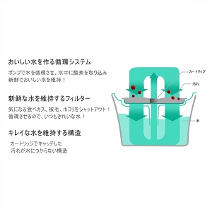 ポンプで水を循環させ、水中に酸素を取り込み新鮮でおいしい水を維持!