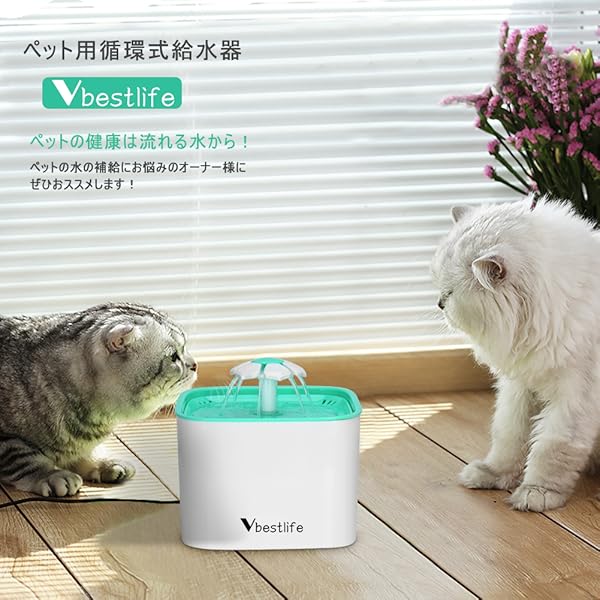 ペット給水器 Vbestlife 水飲み器 水入れ 自動循環式 BPAフリープラスチック 噴水 2L大容量 活性炭フィルター 猫、犬などのペットに対応 健康 安全 便利 (給水器)
