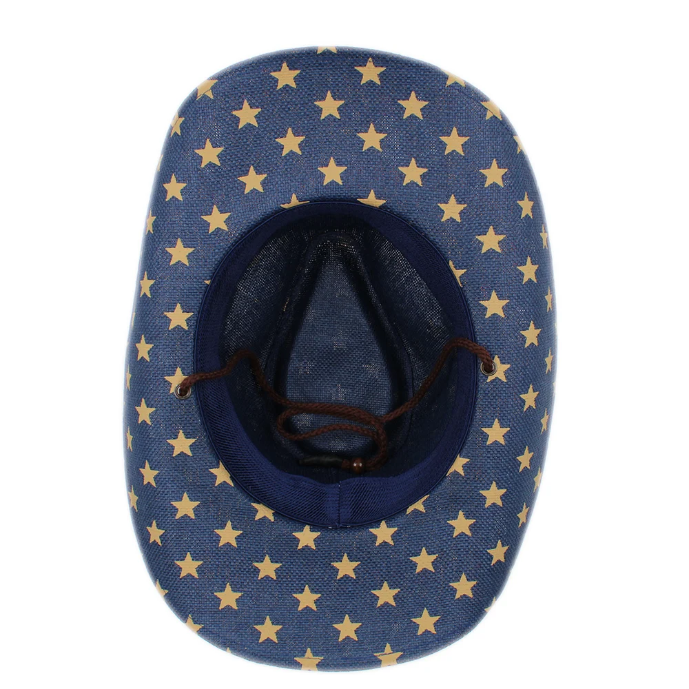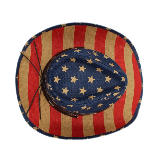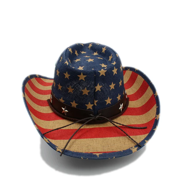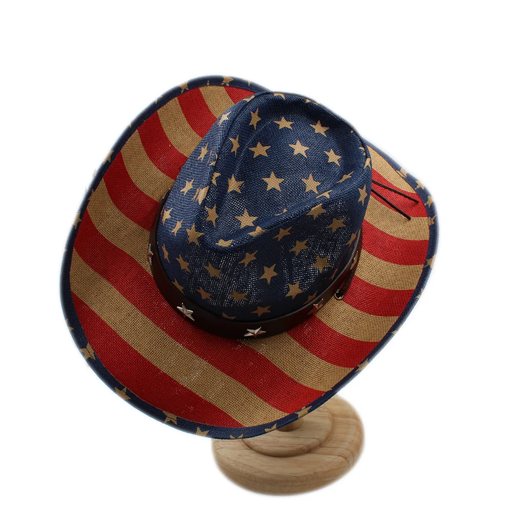 | [해외]INFINITLOVE 남여 빈티지 별 가죽 밴드 미국 국기 카우보이 서양 밀짚 모자 조정 턱 스트랩 킁 가장자리 Ranchero 캡 |