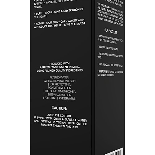 ➨GET YOUR CAR CLEANER AND THE WORLD GREENER. With the purest bio-based ingredients - such as soy, corn and carnauba - free of harsh solvents, alcohols or VOCs - both protection and shine will be outstanding. Did we mention that our box, bottle and cap are 100% recyclable..? Choose our products for the sake of your vehicle, your heritage and the world!