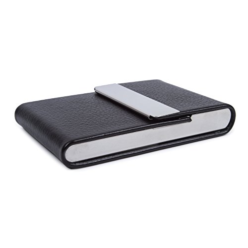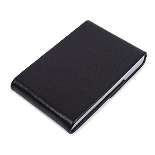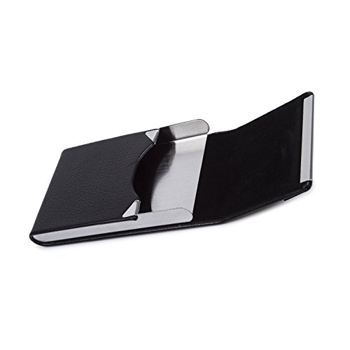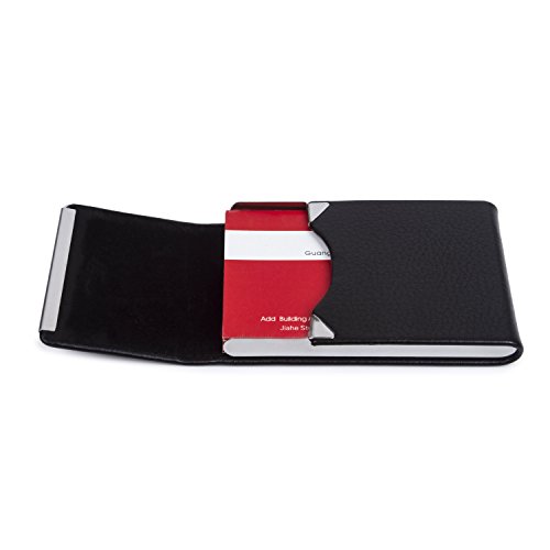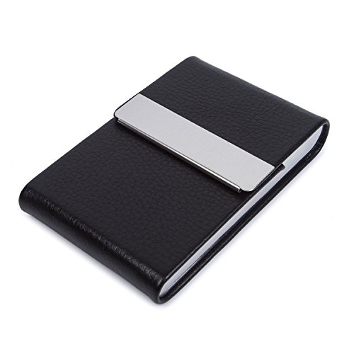 Business Credit ID Card Holder Name Card Case PU Leather Stainless Steel Magnetic Shut Black for 20 Cards 3.54"x2.36"x0.39"