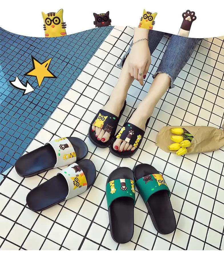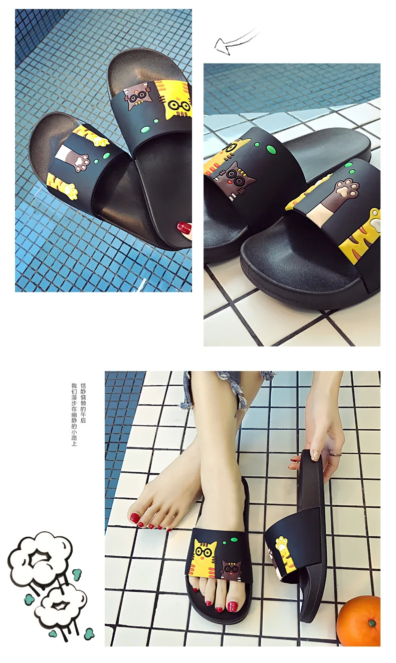 Cute Cat Cartoon Platform Sandals:Women Slippers Summer Women Slides