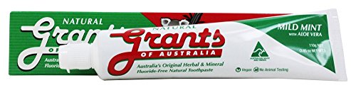 -. Binding : Misc. -. Brand : Grants of Australia -. Color : Parent -. IsAdultProduct : 0 -. Label : Grants of Australia -. Manufacturer : Grants of Australia -. PackageQuantity : 1 -. ProductGroup : Beauty -. ProductTypeName : BEAUTY -. Publisher : Grants of Australia -. Size : Parent -. Studio : Grants of Australia -. Title : Grants of Australia - Natural Toothpaste Mild Mint with Aloe Vera