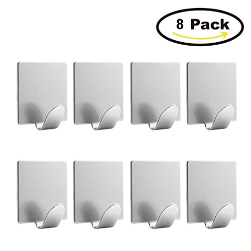 3m Self Adhesive Hooks Faxier Damage Free Strong Stainless Steel Towel Hanger Holder for Bathroom ,Kitchen , Toilet, Bedroom, Living room, Office (8 PCS)