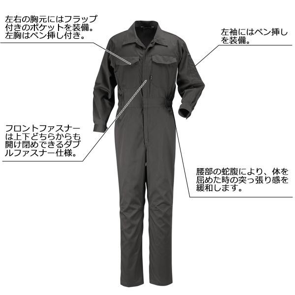 T/C素材を使用した定番スタイルの長袖つなぎ服。