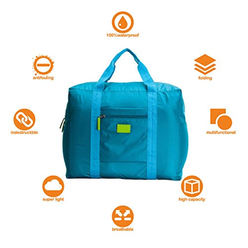 -. Feature : Ultra lightweight but large capacity, only 5.6 oz, durable Nylon fabric provides unsurpassed tear and wear resistance / Size: 18 x 7.8 x 14 inches, compact size with foldable design, easy to store and carry when you need / Waterproof and moistureproof material provides integrated rain protection in a rainy day on your trip / Can be easily attached to the pull-out handle of your lage uP.R.Ight or suitcase, also can be used as a shoulder bag / An essential bag for home or outdoor, shopping bag, storage bag, travel extra bag, gym bag, sport bag, carry-on bag, or lage etc.