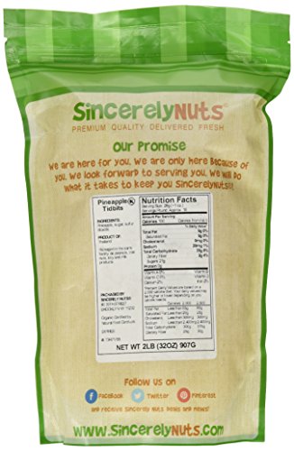 Sincerely Nuts Dried Pineapple Chunks - Two Lb. Bag - Beyond Delicious - Astounding Freshness - Bursting with Wholesome Nutrients - Kosher Certified