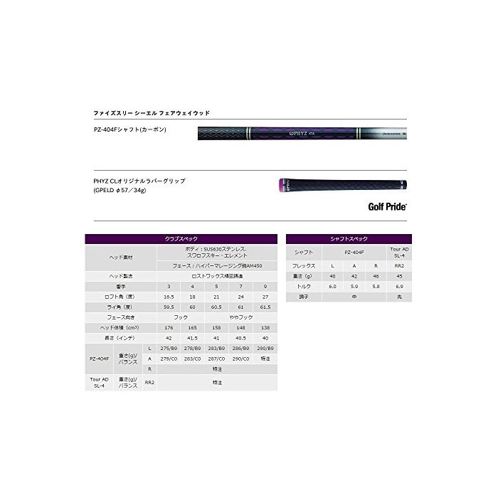 원본상품명: BRIDGESTONE(ブリヂストン) PHYZ3 CL フェアウェイウッド レディス PMEB1W PZ-404F カ?ボンシャフト フレックス:L ハンド:right ロフト角:24 番手:7W