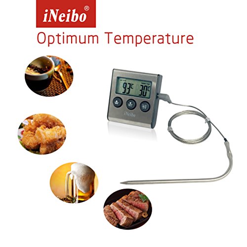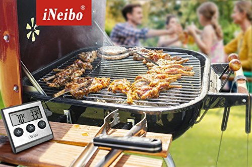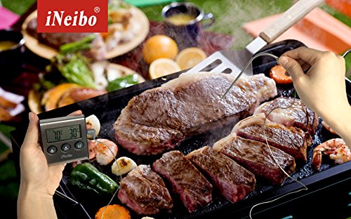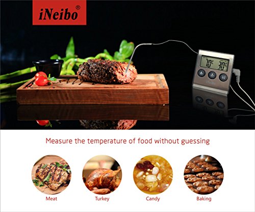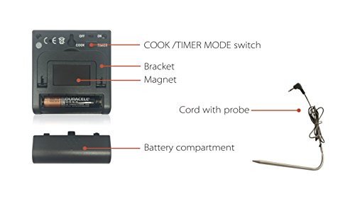 Lifetime Warranty Sensor Probe-We can provide you a free new sensor probe after long time using. The sensor probe is high quality, 304 stainless material with FDA approval Features: *Countdown timer and alarm function *Various cooking: Poultry, Beef, Pork, Beef, Ham, Chicken, Fish and more *Temperature range: from -50 ℃ to 300 ℃ MAX *Easy to exchange the Cooking mode and Timer mode. Specifications: Battery required :1pc ,1.5volt, AAA Probe Length: 5.2" food grade stainless probe Cable Length: 40" stainless steel mesh cable Dimensions: 2.8 L×2.5 H×0.4 W inches Care point: *Wipe the sensor with damp cloth. *Don't immerse the thermometer into water. *Don't leave alone the thermometer in oven when cooking, don't touch hot probe with hands. 0