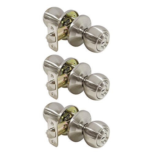 -. Brand : Probrico -. Feature : Stainless Steel Material. Confirm with ANSI Grade 3, Exceeds 200,000 cycles. / Adjusts for 2-3/8"(60mm) or 2-3/4"(70mm) backsets. Fits doors thickness 1-1/4"(35mm) to 1-3/4"(45mm). / Made of modern design, the door hardware is for a long time use. / Universal handing; Designed for both left and right hand doors. -. Label : Probrico -. Manufacturer : Probrico -. ProductGroup : Home Improvement -. ProductTypeName : HARDWARE -. Publisher : Probrico -. Studio : Probrico -. Title : Probrico 3 Pcs Brushed Nickel Keyed Door Lockset Entry with Key Door Knob Handles Entrance lock